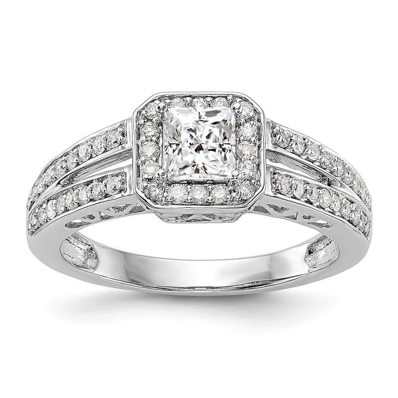 14K White Gold Diamond Princess Semi-Mount Cushion Halo Engagement Ring - Seattle Gold Grillz