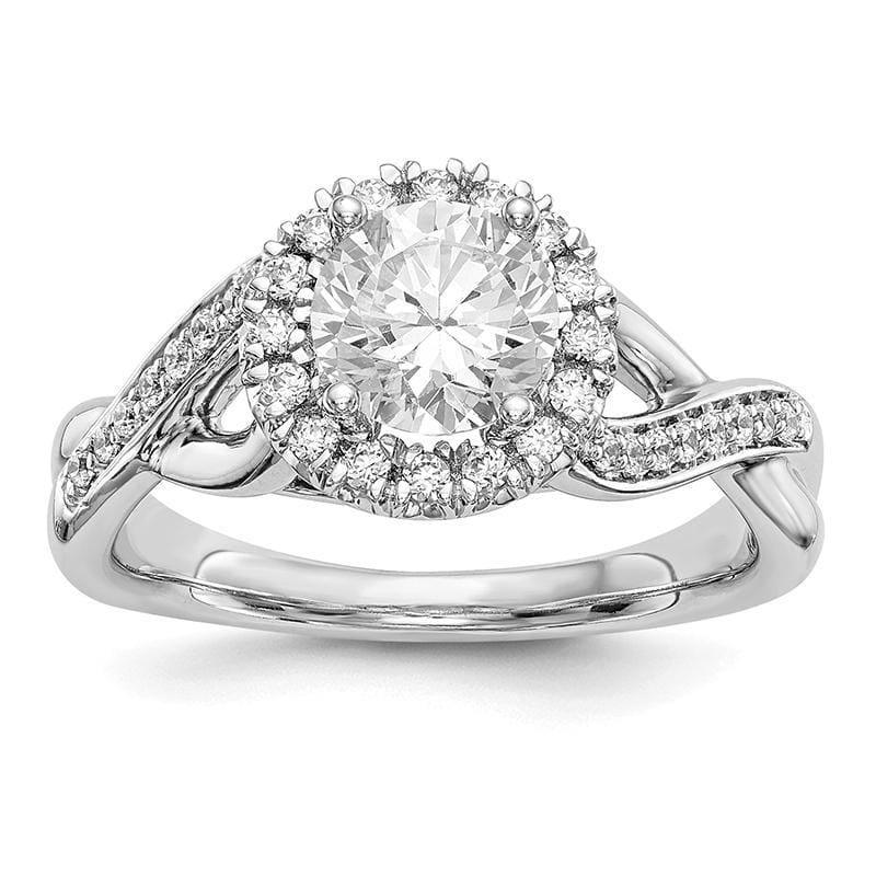 14K White Gold Round Halo Engagement Ring Mounting - Seattle Gold Grillz