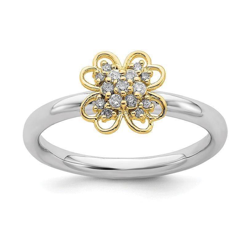 Sterling Silver & 14k YG-plated Stackable Expressions Diamond Flower Ring