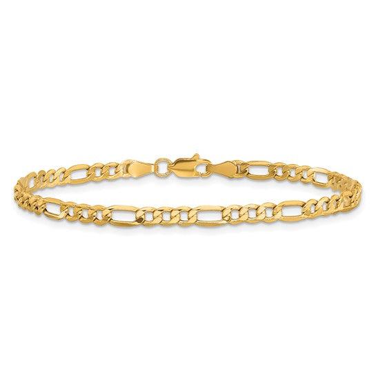 10k 3.5mm Semi-Solid Figaro Bracelet