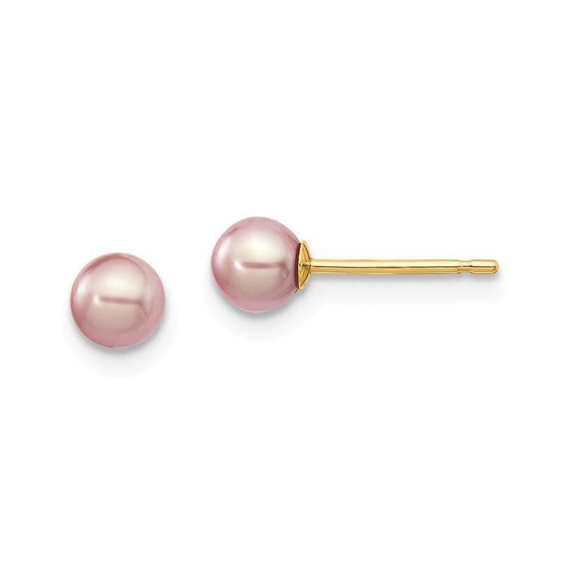 14k 4-5mm Purple Round Freshwater Cultured Pearl Stud Earrings - Seattle Gold Grillz