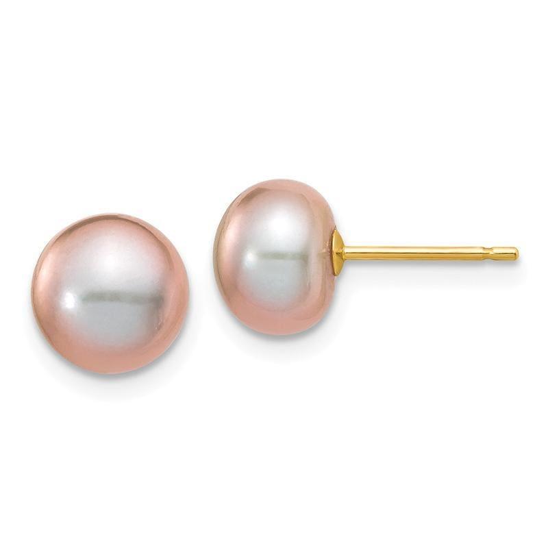 14k 7-8mm Purple Button FW Cultured Pearl Stud Earrings - Seattle Gold Grillz