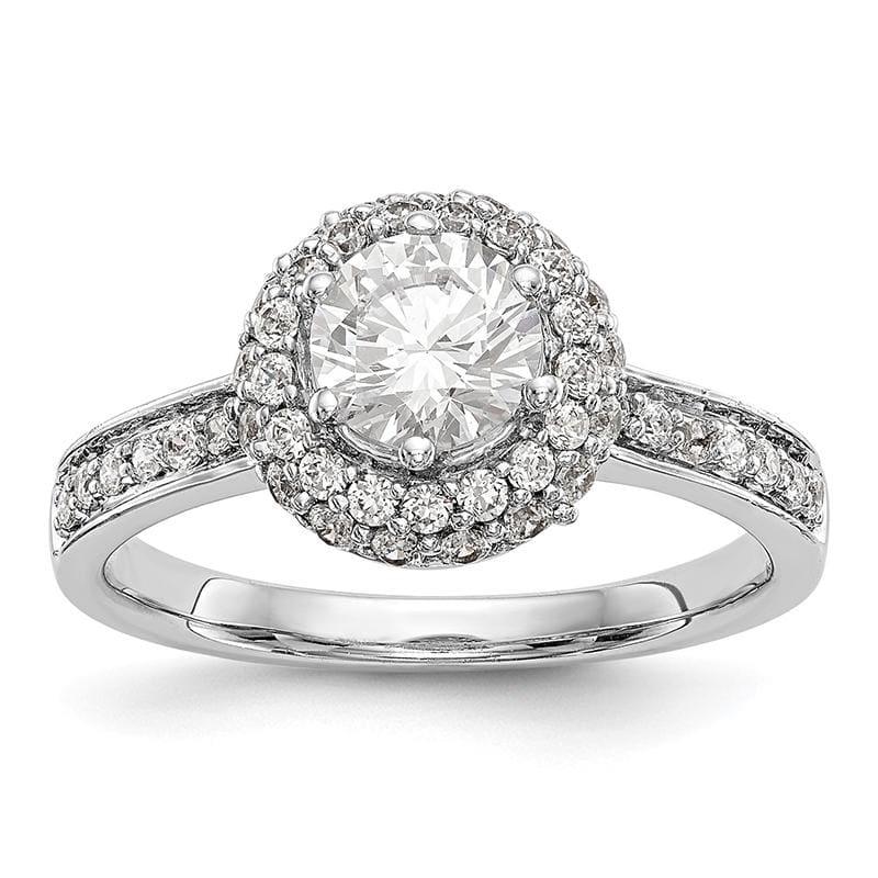 14K White Gold Round Diamond Semi-Mount Halo Engagement Ring - Seattle Gold Grillz