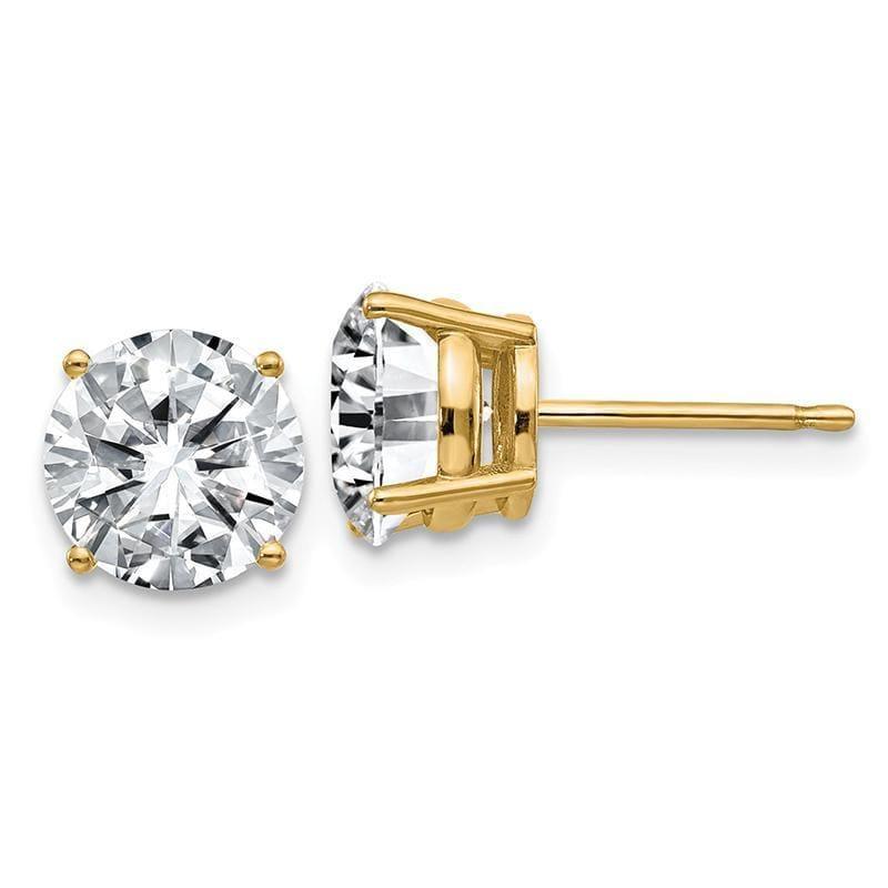 14ky 3.00ct. 7.5mm Round Moissanite 4-Prong Basket Post Earring