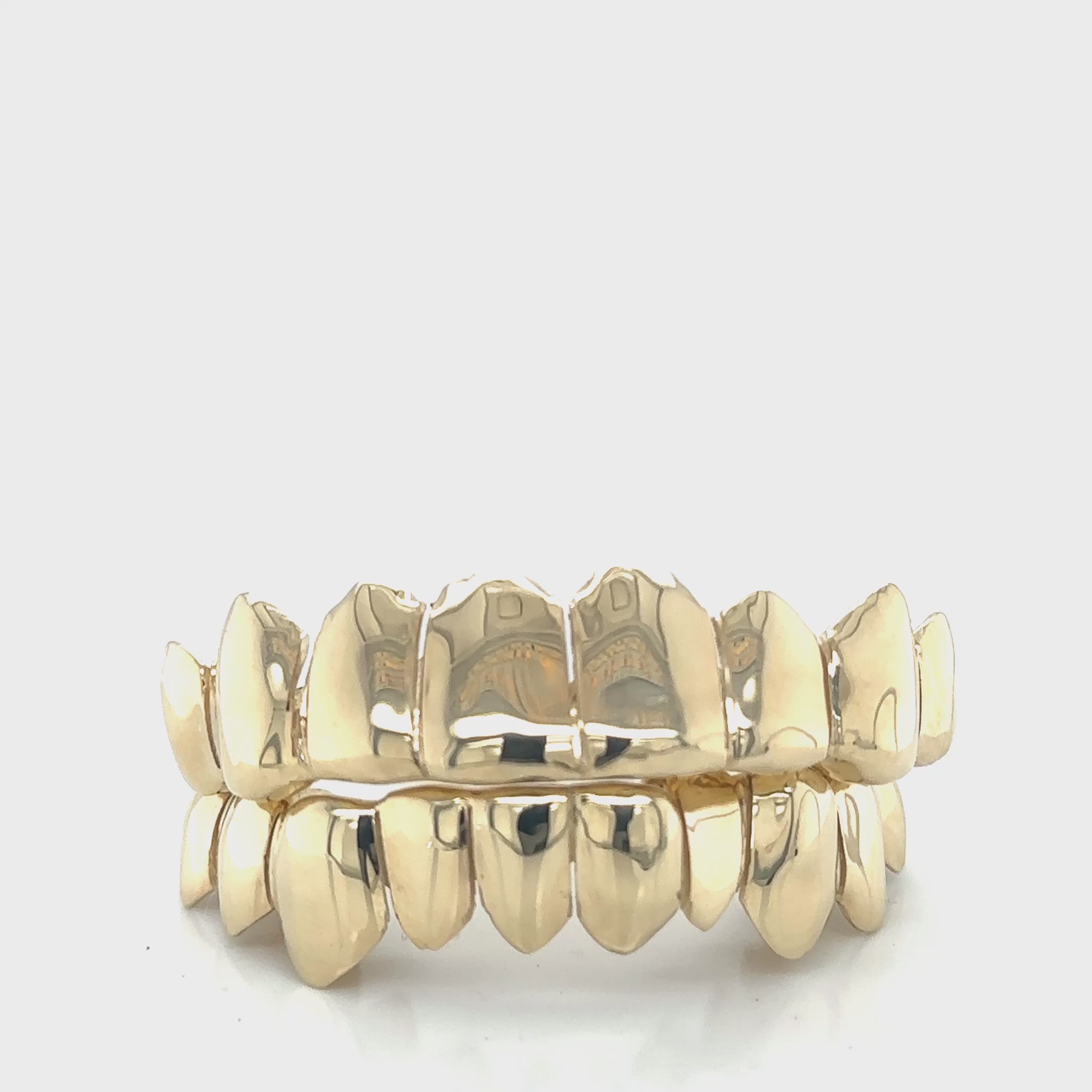 - Elevate your style with the 18pc Gold Perm Cut Grillz
