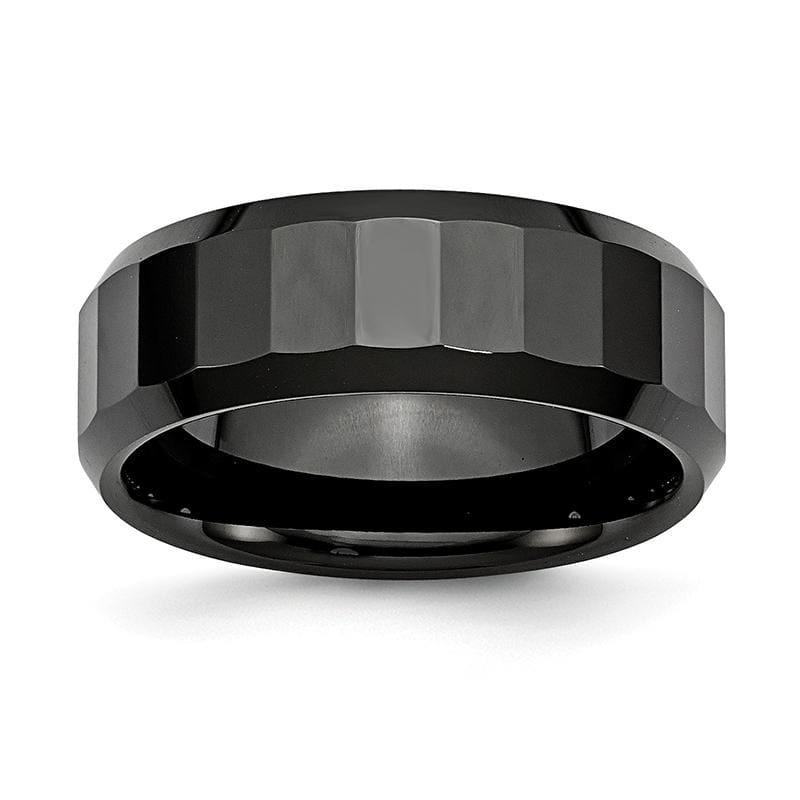 Ceramic Black Faceted Beveled Edge 8mm Polished Band