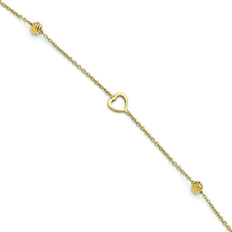 Leslie's 14k Polished and Diamond-cut Heart Anklet w-1in ext