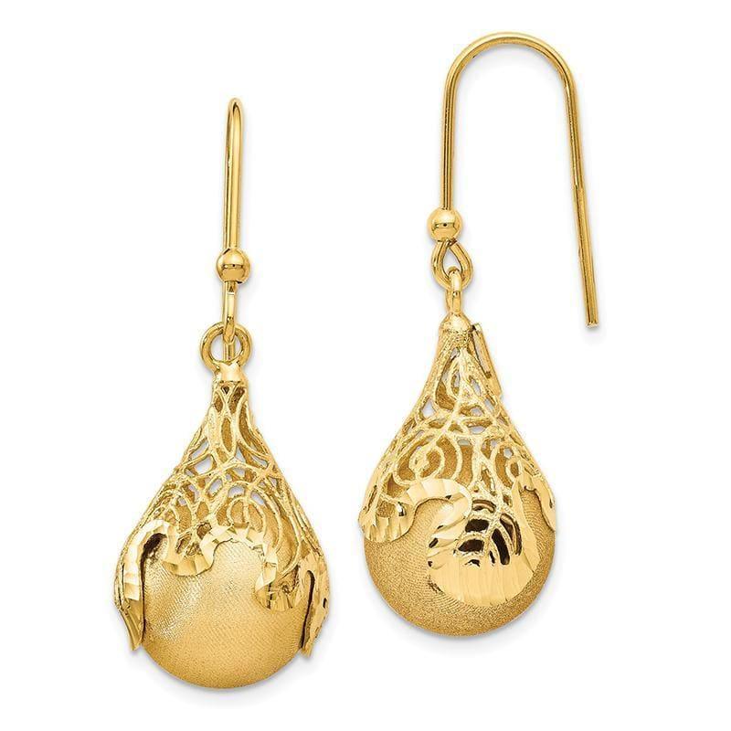 Leslies 14k Polished and Satin D-CTeardrop Shepherd Hook Earrings - Seattle Gold Grillz