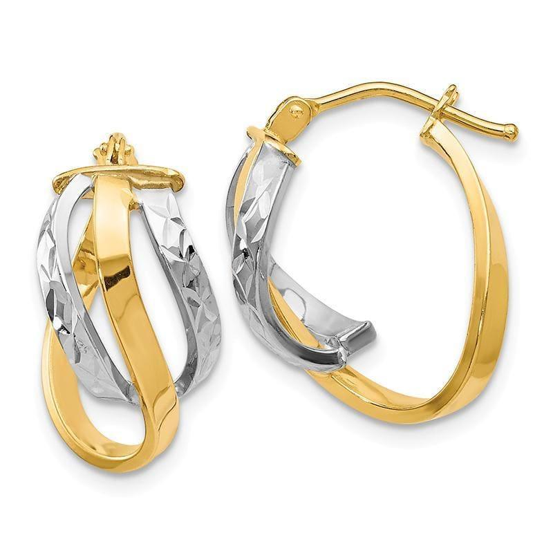 Leslie's 14k Two-tone Polished and D-C Oval Hinged Hoop Earrings - Seattle Gold Grillz