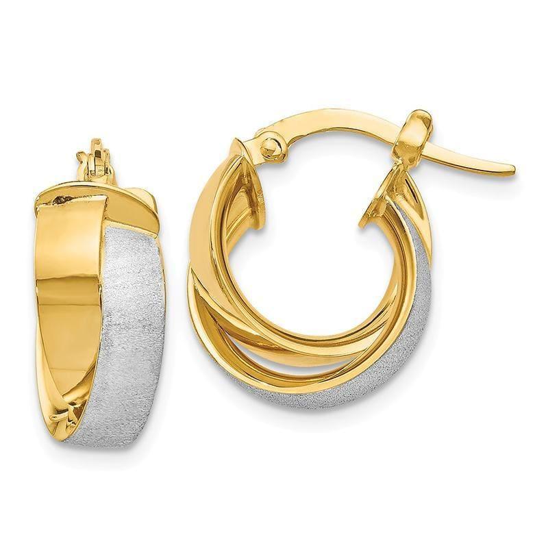 Leslies 14k w/ Rhodium Plated Polished & Textured Hoop Earrings