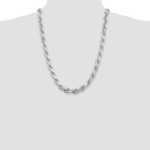 Sterling Silver 10.25mm Diamond-cut Rope Chain