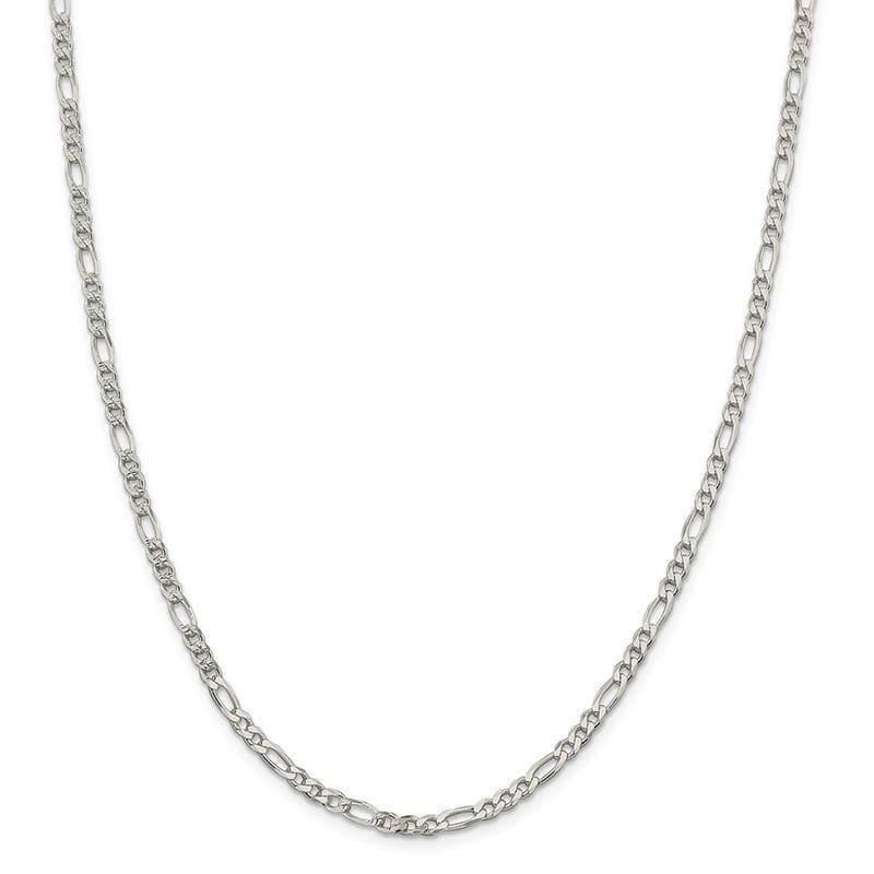 Sterling Silver 4mm Pav‚ Flat Figaro Chain | Weight: 4.08 grams, Length: 7mm, Width: 4mm