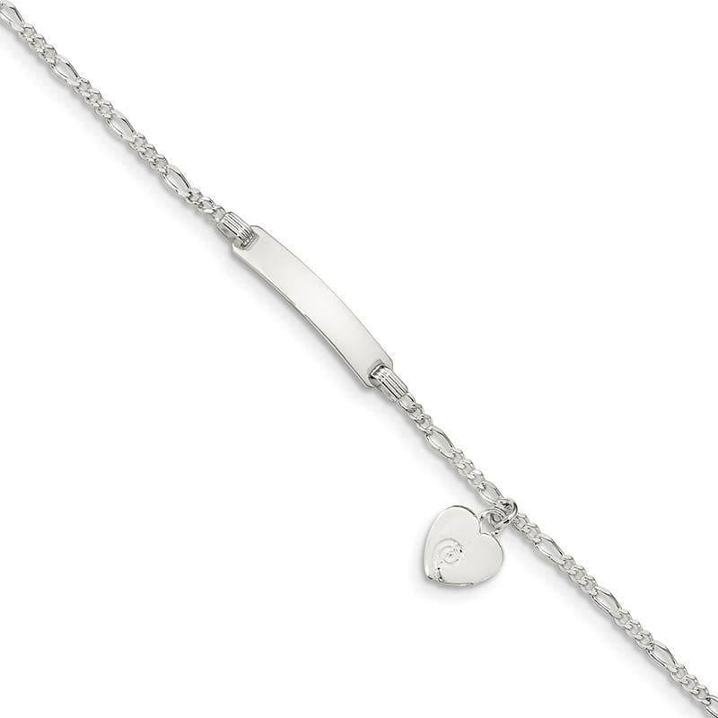 Sterling Silver Children's ID with Heart Charm Bracelet | Weight: 2.12 grams, Length: 6.25mm, Width: 2mm